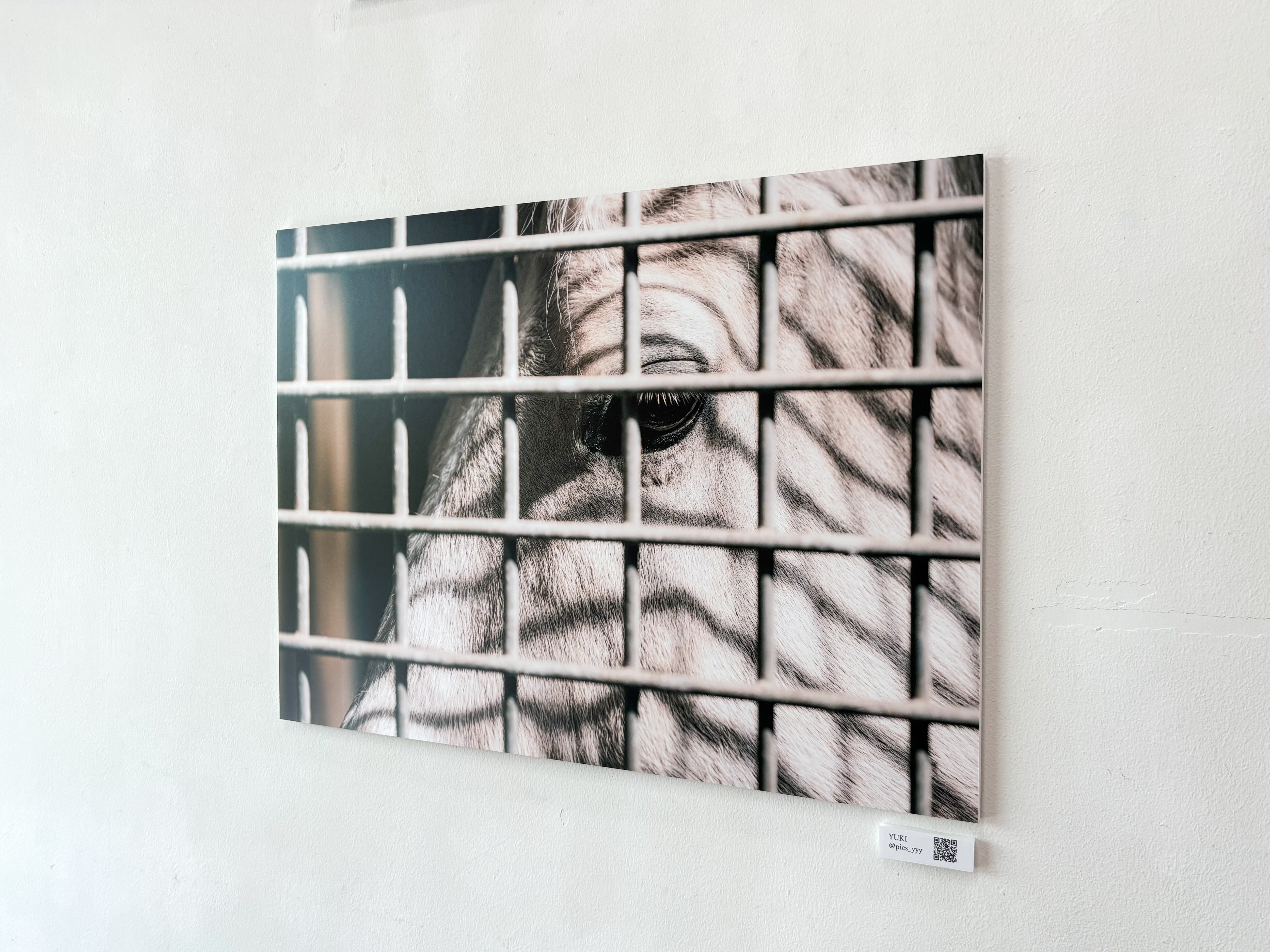 白い馬の写真。A2サイズ、スチレンボード加工。写真展にて展示したものとなります。